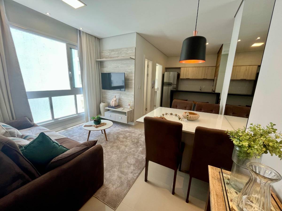 Localização privilegiada no bairro Navegantes! Apartamento finamente mobiliado e decorado, composto por 01 suite, sala de estar e jantar, churrasqueira, banheiro social e uma vaga de garagem. Além disso o apartamento é todo climatizado e já vem com os eletrônicos, pronto para habitar. - Edifício de alto padrão construtivo, 100% revestido em pastilhas, 2 elevadores, zeladoria permanente. - Infraestrutura: salão de festas, churrasqueira social e espaço gourmet. Localização privilegiada no bairro Navegante junto a praça Tiaraju e poucos minutos da praia e próximo a tudo para facilitar seu dia a dia. Entre em contato para mais informações!