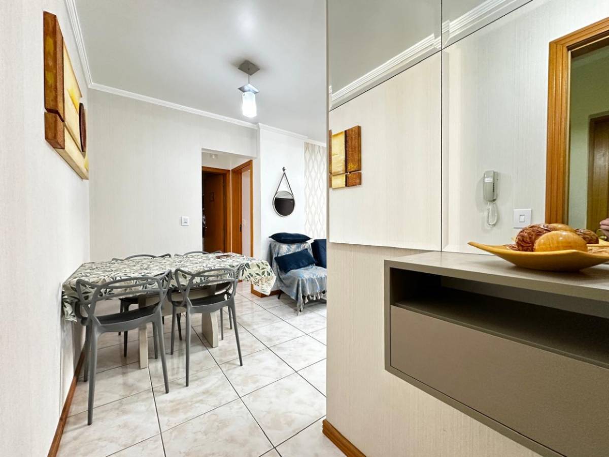 - 1 dormitório - Totalmente mobiliado e equipado, pronto para uso. - Frente Norte - Sacada de frente com churrasqueira - Banheiro social - Box de garagem - Infra estrutura completa: - Hall de entrada totalmente mobiliado e decorado - 2 elevadores - Espaço kids - Sala de jogos - Salão de festas - Piscina - Espaço fitness - Zeladoria permanente o ano inteiro