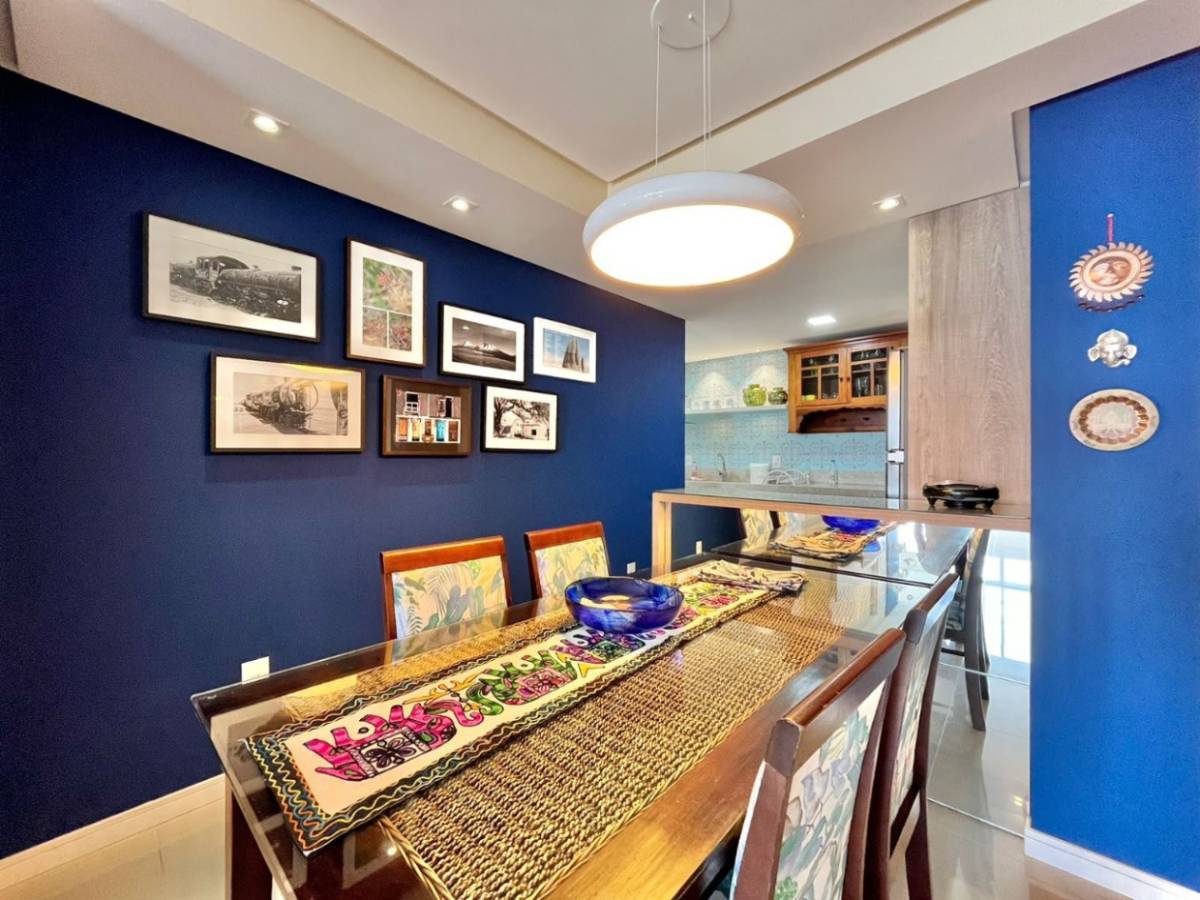 Um dos maiores apartamentos de sua categoria, são 95 M² privativos, sacadão de frente com churrasqueira, linda vista para serra, cidade e mar, 2 dormitórios, sendo 1 suíte, líving equivalente a apto de 3 dormitórios, cozinha conceito aberto, área de serviço separada, banho social, *todas as peças com ventilação natural*, 3 aparelhos de ar condicionado, aquecedor, água quente, gás central, hidrômetro individual, box de estacionamento no segundo pavimento. Edifício de esquina, hall decorado, 2 elevadores, portão eletrônico, portaria abertura com senha. Localização nobre, bairro Navegantes, 3 quadras do mar e calçadão, próximo à praia de Atlântida.