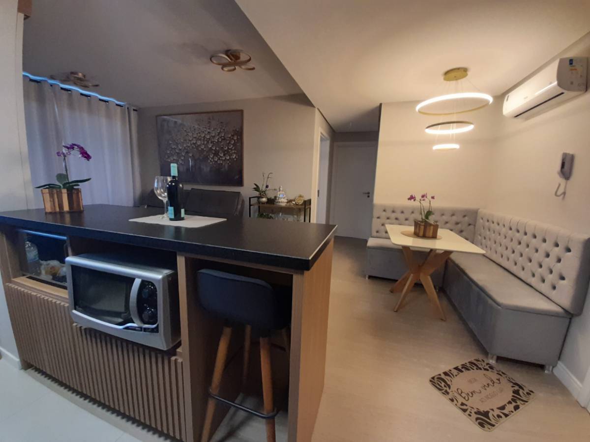 Este imóvel foi entregue novo, completamente mobiliado e decorado, pronto para você desfrutar. Com 66m de área privativa, ele dispõe de duas suítes de casal, garantindo total conforto e privacidade. O living integrado é o coração do apartamento, ideal para momentos de convívio. Pensando no seu bem-estar em todas as estações, o apartamento conta com ar condicionado quente e frio, além de chuveiros e torneiras com aquecimento a gás. Uma churrasqueira privativa e uma área de serviço funcional complementam as comodidades internas. A vista é simplesmente espetacular: você terá o privilégio de contemplar o mar e o inesquecível pôr do sol. A sacada aberta com frente norte não é apenas iluminada e arejada, mas funciona como um camarote exclusivo para o show de fogos da virada do ano. Para completar, você conta com um box de estacionamento coberto.