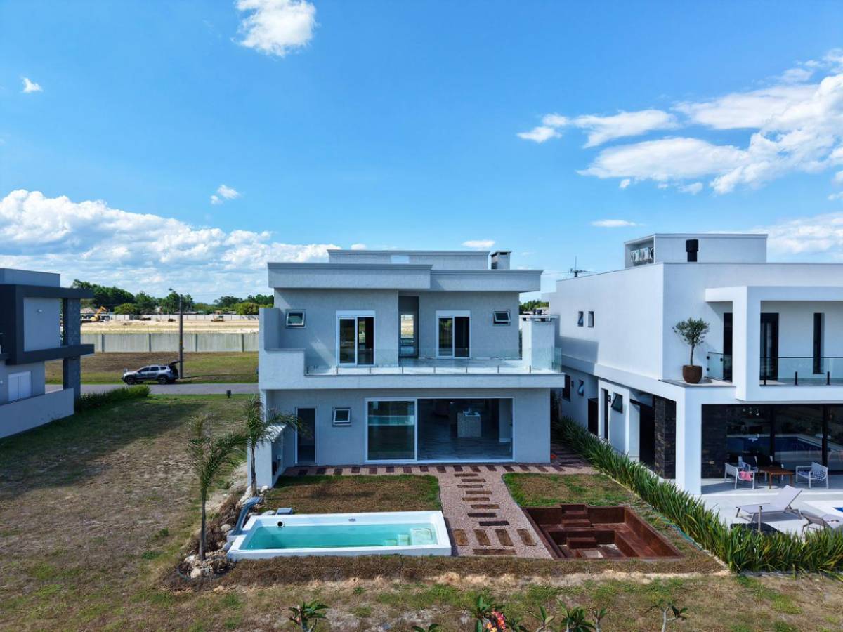 Sobrado neoclássico à venda em condomínio fechado em Curumim,  com vista incrível e localização privilegiada beira lago,  junto ao mar. Com 330 m² construídos,  o imóvel conta com quatro suítes,  sendo uma no térreo e uma master com closet. Ambientes amplos e bem iluminados,  lavabo,  living integrado,  lareira e churrasqueira. A área externa oferece piscina,  paisagismo,  terraço amplo e fogo de chão (fire pit),  perfeitos para lazer e contemplação. Possui móveis fixos,  aberturas em PVC e vaga para dois carros. Um projeto sofisticado que combina conforto,  elegância e o melhor do litoral em um dos condomínios mais valorizados de Curumim.