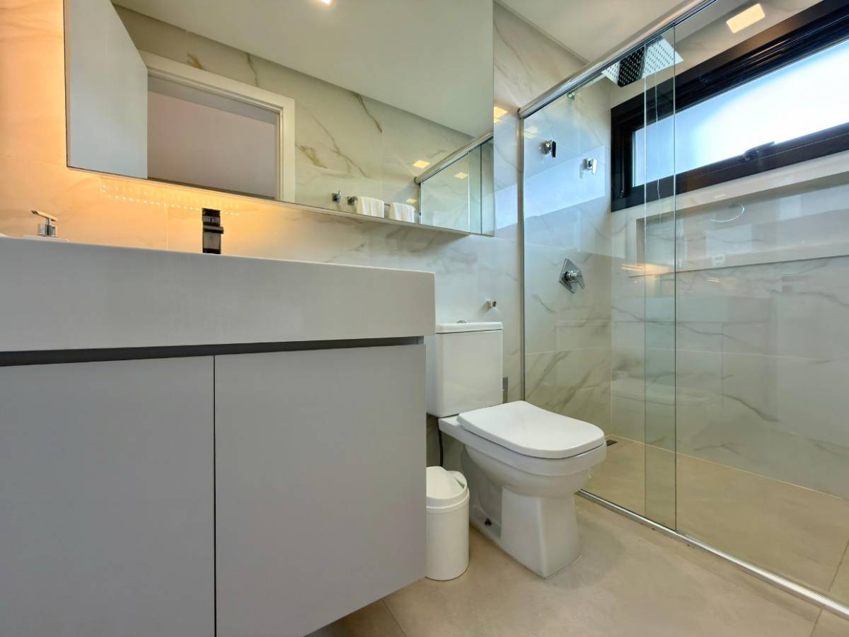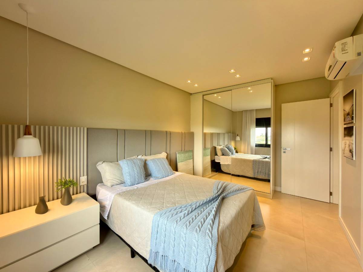 Sobrado de Luxo Beira Lago no Condomínio Enseada Esta residência de alto padrão em Xangri-lá oferece uma experiência única de moradia à beira do lago no centro da cidade. Com 416 metros quadrados de área construída, o imóvel é entregue completamente mobiliado e finamente decorado, contando com cinco suítes, sendo a master equipada com spa. O living é distribuído em três ambientes amplos, complementados por lavabo e um projeto de paisagismo com irrigação automática. A infraestrutura tecnológica e de lazer é completa, incluindo piscina de concreto com aquecimento, sistema de energia solar, gerador com autonomia de três horas e carregador para veículo elétrico. O imóvel une sofisticação construtiva e sustentabilidade em uma das localizações mais exclusivas do litoral.