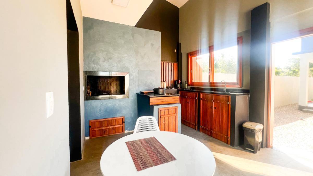 CASA À VENDA NO CAPÃO NOVO VILLAGE,  BAIRRO PLANEJADO ——————————————— - Casa sozinha no pátio - 172m² de área construída - 300m² de terreno - Composta de 2 dormitórios sendo 01 suíte - Banho social - Pé direito alto - Energia solar - Abertura em grápia - Quiosque com cozinha completa,  com fogão a lenha e um mezanino para mais um quarto