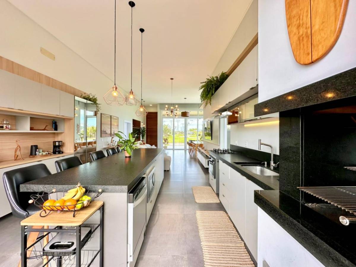 Casa à venda no Dubai com 184 m², totalmente mobiliada e decorada, oferecendo 3 suítes, sendo uma master, lavabo e ambientes integrados. Conta com área verde na frente, lateral e fundos, proporcionando contato com a natureza, além de vista para o lago e abrigo para carro, unindo conforto, elegância e qualidade de vida.