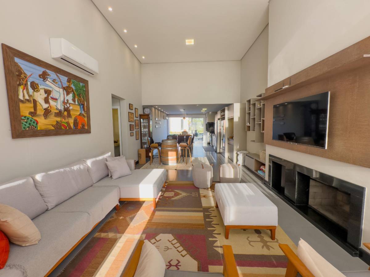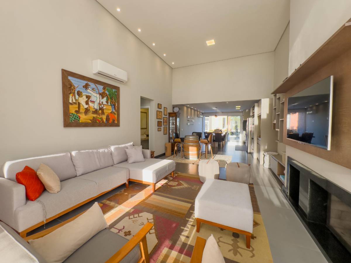 Casa nova no Condomínio Riviera, mobiliada e decorada, pronta para morar. Possui quatro dormitórios, sendo duas suítes, ampla sala de estar e jantar integradas à cozinha americana totalmente equipada. O imóvel conta com sistema de irrigação de jardim automática, placas solares que garantem autossuficiência energética e piscina com aquecimento. Um projeto moderno, funcional e cheio de conforto em um dos condomínios mais desejados da região.