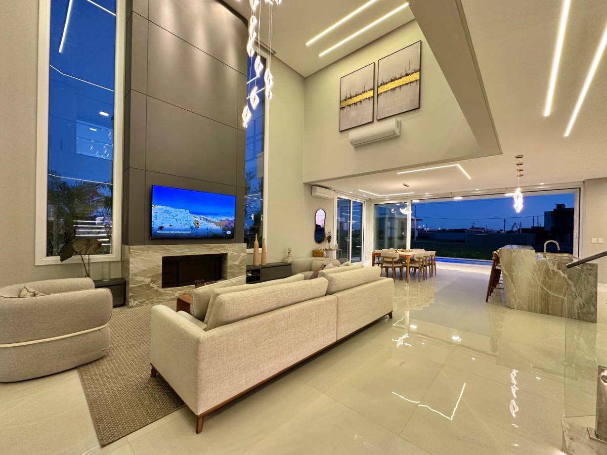 Lindo sobrado, com lindas vistas e espaços para contemplar os lagos. 4 amplos dormitórios com Suítes e sacadas com vista para o LAGO. Amplo living Integrado c/ lareira. Cozinha americana c/ linda bancada em granito, espaço gourmet. Sala de jantar com mesa de 8 lugares. Sistema de automatização por Alexa. Aquecimento de piso em todos os quartos e banheiros. Sistema de câmeras externas. Garagem para 2 carros com espaço de mais 2 na rampa. Sala de Tv. Sacada terraço com lindas vistas dos lagos e pôr do sol. Amplo pátio com jardinagem iluminação e paisagismo. Linda Piscina c/ prainha, automatizada e com esperas para aquecimento. Terreno com 13, 50x28m 378m2. Sobrado 362m2