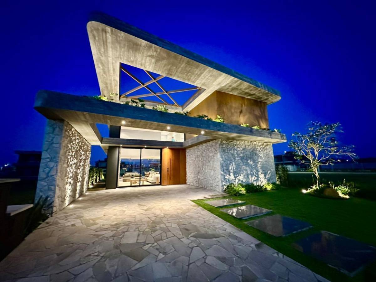 CASA NO CONDOMÍNIO AMARE Casa de alto padrão no Amare Home Resort, com living e espaço gourmet que totalizam mais de 100m² em quatro ambientes integrados. Possui cinco suítes, sendo uma térrea e uma master com banheira, distribuídas em 410m² de área construída. Conta ainda com churrasqueira e parrilla externa, piscina pastilhada com deck de madeira, elevador e acabamento completo. A residência está 100% mobiliada e decorada com mobiliário Todeschini.